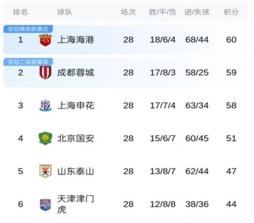 而海港队、蓉城队只有1分的分差,海港队只要不犯错,就将夺得最终的冠军;蓉城队则需要保持全胜的同时,看海港队脸色!保级方面,青岛海牛一战跳出降级区,梅州客家和长春亚泰队成为降级大热门。