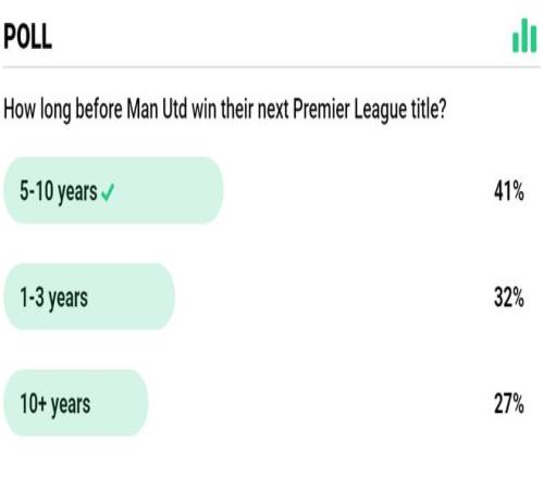 英国《地铁报》的调查显示,不少人支持弗爵对曼联夺冠所需时间的预测,认为需要5到10年才能实现目标。对于弗爵的预言,现任主帅阿莫林表示并不认同,他认为球队可以更早夺冠。根据吉姆·拉特克里夫爵士的计划,曼联应该在2028年球队建立150周年大庆时重夺英超冠军。